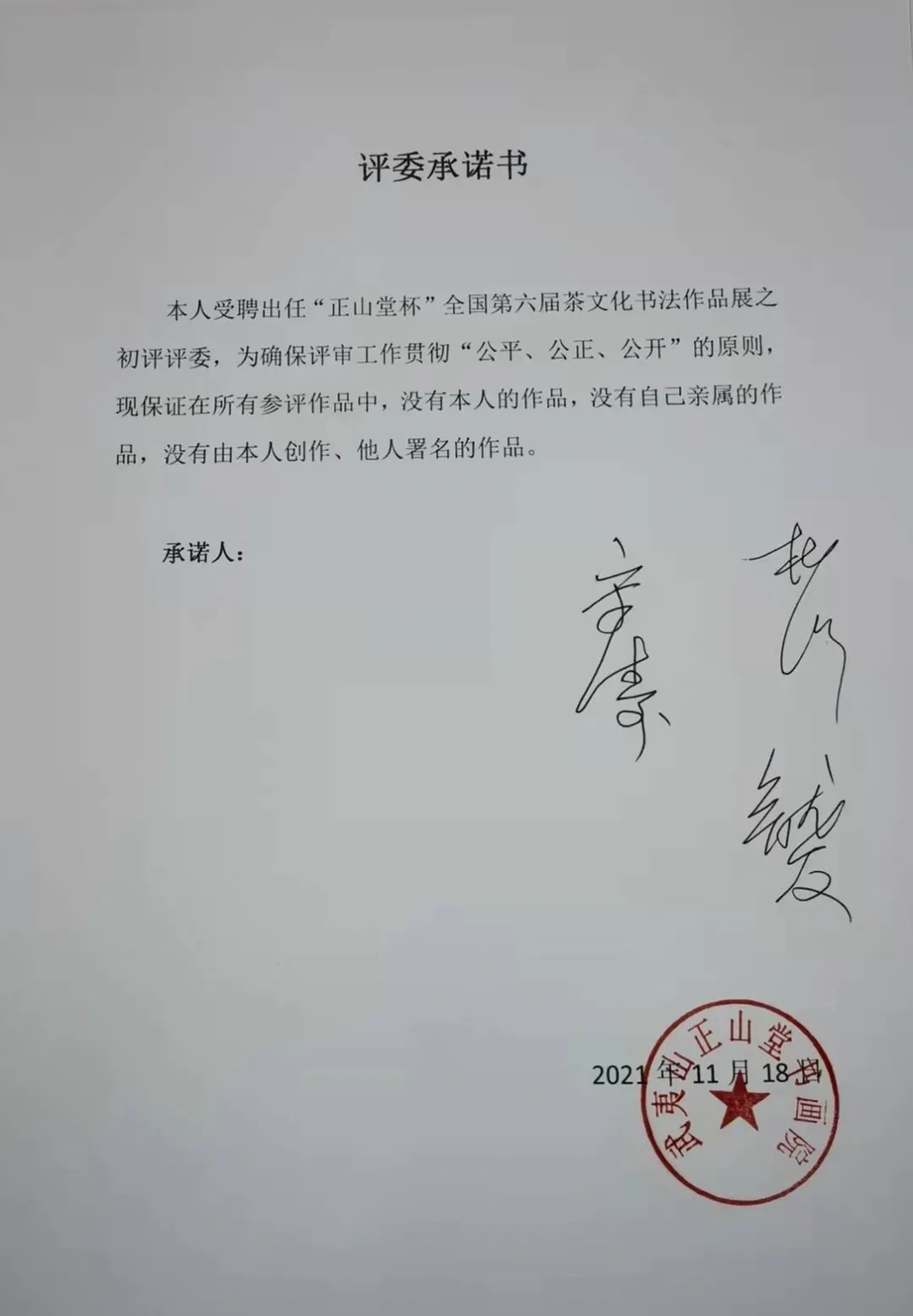 2021年11月18日,“正山堂杯”全国第六届茶文化书法作品展评审工作(初评)在正山堂书画院圆满结束。