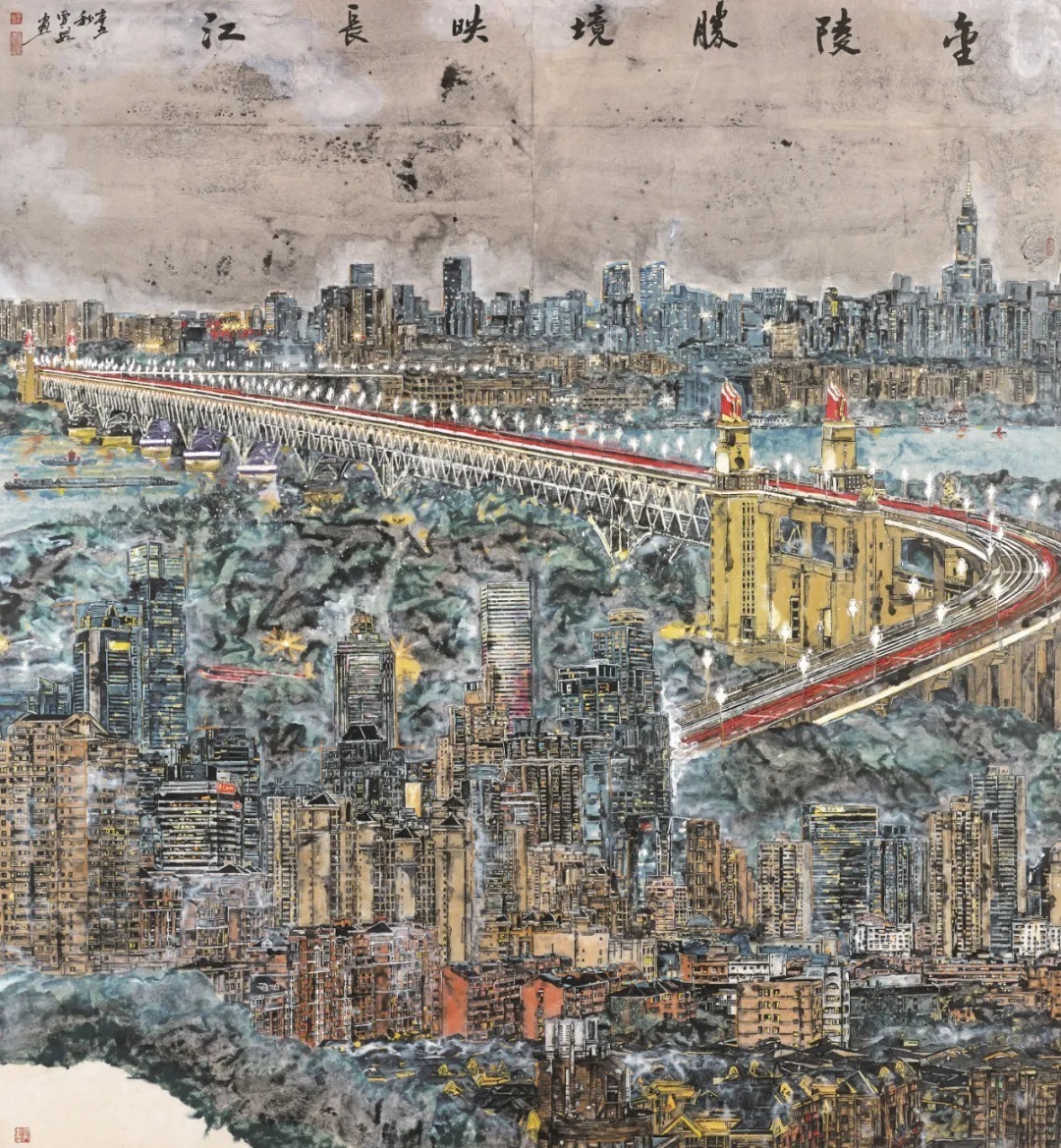 贾茹《金陵胜境映长江》(200×184厘米,江苏)