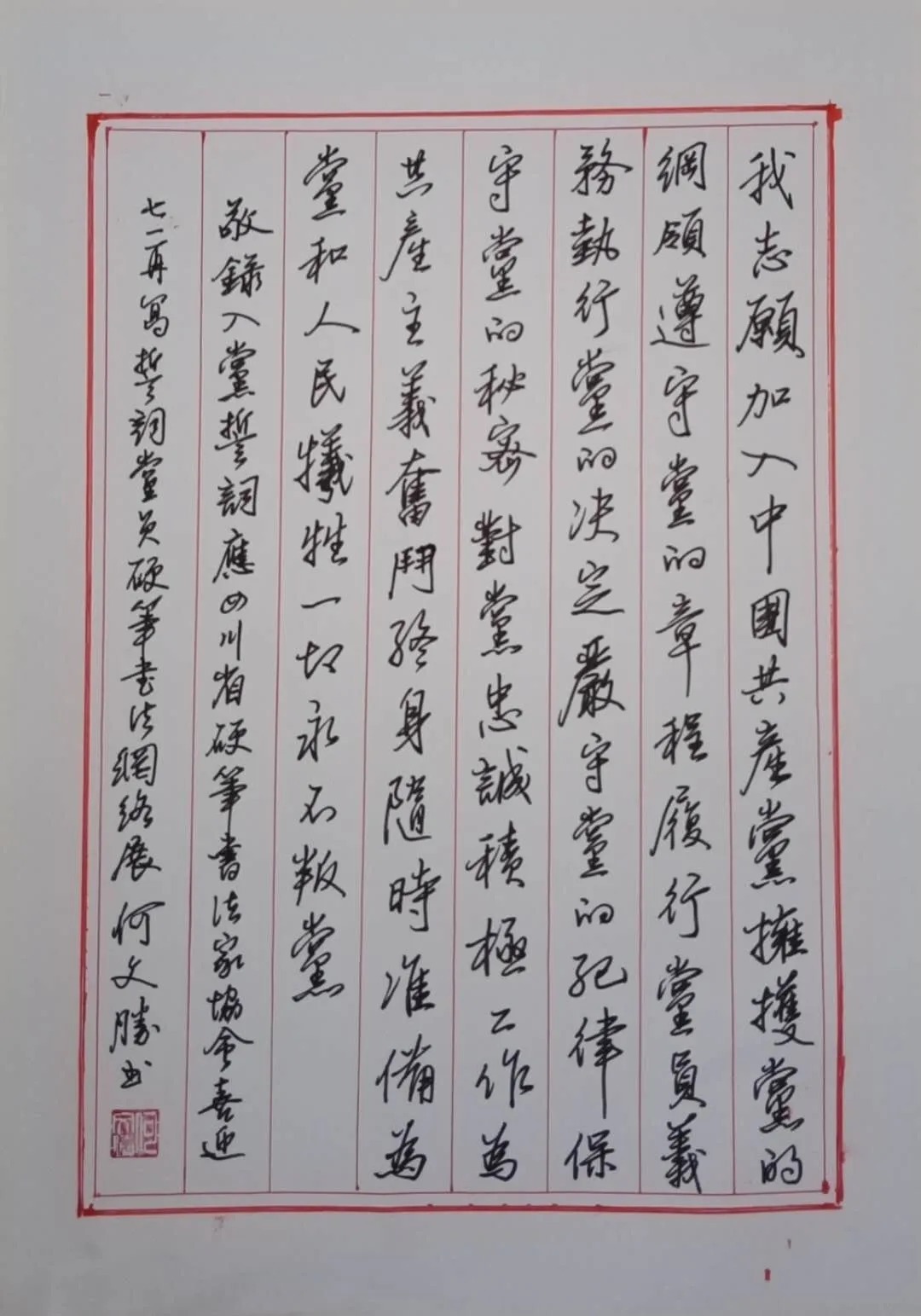 四川省硬笔书法家协会“喜迎七一•再写誓词”党员硬笔书法网络展