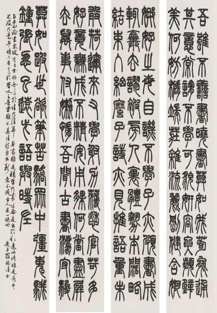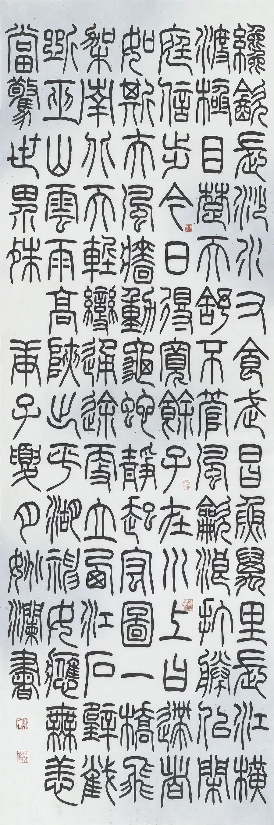 黄建森 楷书 陈孔璋《檄文二则》 192cm×121cm 黄建森 篆刻 《黄建森篆刻选》 温安俊 楷书 节录《西都赋》 120cm×28cm×8 温安俊 篆书 节录《三略·中略》 248cm×120cm << 滑动查看下一张图片 >> 温安俊 篆刻 篆刻组件 朱科宇 装置 《道德经八百方》 100cm×200cm×4 谢赛雯 篆书 《泉从云与联》对联 180cm×25cm×2 谢赛雯 楷书 苏轼《论书》立轴 284cm×55cm << 滑动查看下一张图片 >> 谢赛雯 篆刻 《篆刻印屏》 张子寅 四体书 古代爱情诗四首 72cm×340cm×4 << 滑动查看下一张图片 >> 张子寅 篆刻 《边款印象》 崔泽超 小楷 节录杜甫诗 15cm×22cm×9 崔泽超 行书 《摩诘诗选》组件 31cm×33cm×8 << 滑动查看下一张图片 >> 崔泽超 篆刻 篆刻组印 << 滑动查看下一张图片 >> 阮天伦 行书 《东坡词选》卷 35cm×400cm 阮天伦 楷书 节录韩愈诗 260cm×180cm << 滑动查看下一张图片 >> 阮天伦 小楷 节录《花间集》册 30cm×150cm << 滑动查看下一张图片 >> 阮天伦 篆刻 《天伦印痕》 陈奂 楷书 阮籍《咏怀诗》 270cm×200cm << 滑动查看下一张图片 >> 陈奂 书法、篆刻 《秦诏版印象·橘颂》 << 滑动查看下一张图片 >> 陈奂 篆刻 《小陈刻印》 张磊 隶书 东方朔《诫子书》屏 368cm×120cm << 滑动查看下一张图片 >> 张磊 篆刻 篆刻组件 金雨娴 楷书 曹唐《游仙诗选》屏 182cm×20cm×4 金雨娴 篆书 节录陈继儒《小窗幽记·集素篇》立轴 金雨娴 篆刻 白云处处长随君 金雨娴 篆刻 空山有雪相待 姚澜 篆书 《水调歌头·游泳》 180cm×61cm 姚澜 篆刻 《杭帮菜》 宁作超 楷书 张仲景《伤寒杂病论序》屏 78cm×244cm 宁作超 篆书 集宋词联 19cm×180cm×2 宁作超 行草 陆龟蒙《茶具十咏之一》屏 62cm×244cm << 滑动查看下一张图片 >> 宁作超 小楷 陆羽《茶经》卷 宁作超 篆刻 篆刻组合 鞠杨 行草 陆龟蒙《茶具十咏之一》屏 62cm×244cm << 滑动查看下一张图片 >> 鞠杨 篆刻 《篆刻组件》 杨子腾 草书 节录《赤壁赋》150cm×95cm << 滑动查看下一张图片 >> 杨子腾 篆刻 篆刻组印 王子豪 小篆《湘江赋》230cm×45cm×4 王子豪 紫砂壶全形拓 《咏茶》 205cm×30cm×4 << 滑动查看下一张图片 >> 王子豪 篆刻 印纽主题性创作(部分) 刘开任 草书 节录董其昌《画禅室随笔》立轴 62cm×245cm 刘开任 楷书 节录王宜山《围炉夜话》轴 62cm×225cm << 滑动查看下一张图片 >> 刘开任 篆刻 篆刻 《雪酌梅花斋印痕》 李嘉茵 楷书 《曹植书牍二篇》 248cm×129cm 李嘉茵 小篆 《拟古四首》《李太白古风十二首选录》 李嘉茵 篆刻 《嘉茵印迹》 张鹏 篆书《黄庭坚弈棋诗二首》屏 167cm×79.4cm << 滑动查看下一张图片 >> 张鹏 篆刻 《张鹏篆刻》 黄雅玲 大篆 孟子句 190cm×68cm 黄雅玲 隶书 《久离别》 轴 248cm×129cm 黄雅玲 篆刻 黄雅玲篆刻 罗锡清 楷书 苏轼《赤壁赋》 120cm×200cm 罗锡清 行书 米芾《海岳名言》 100cm×120cm 罗锡清 篆书 苏轼《与子由论书》 120cm×200cm 罗锡清 篆刻 罗锡清篆刻 << 滑动查看下一张图片 >> 李配志 行草 高濂《四时幽赏录诗》卷 548cm×49cm