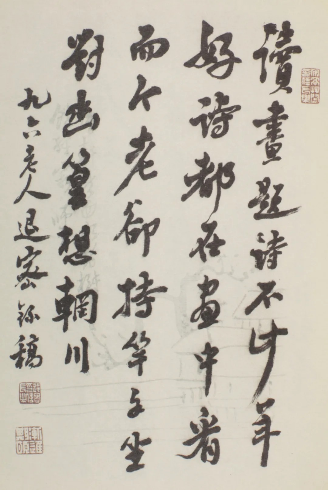 以年龄论,周退密是当今诗坛、书界第一高寿人,也是具备现代人格的知识分子。他的诗词、书法并峙,是文化高原上真正的文化高峰,值得我们敬仰、学习、珍惜。