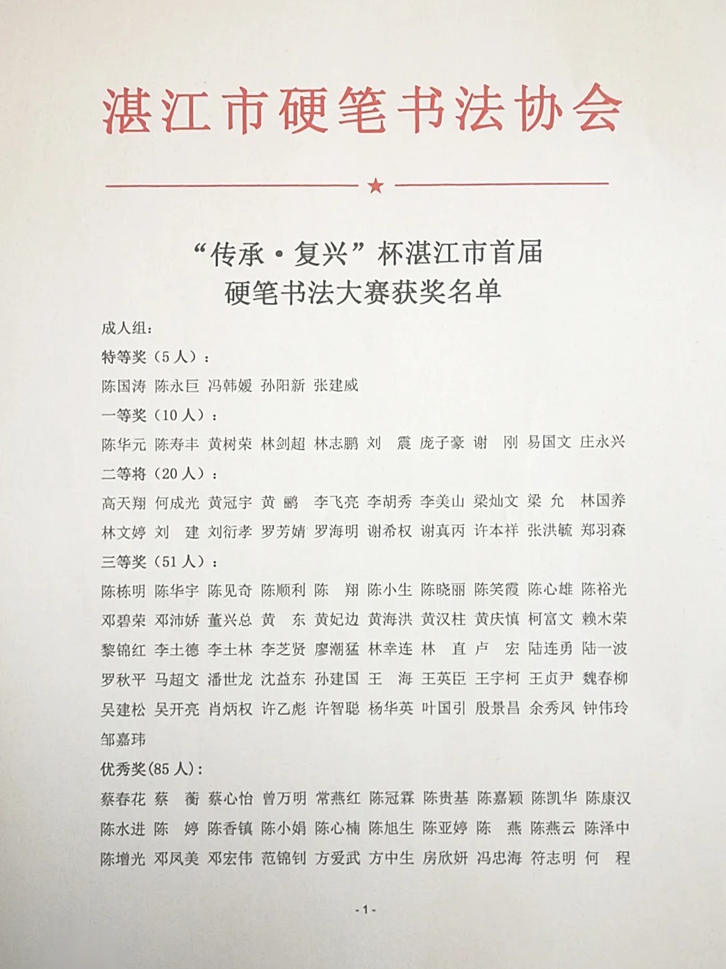 “传承·复兴”杯湛江市硬笔书法大赛评审结果揭晓