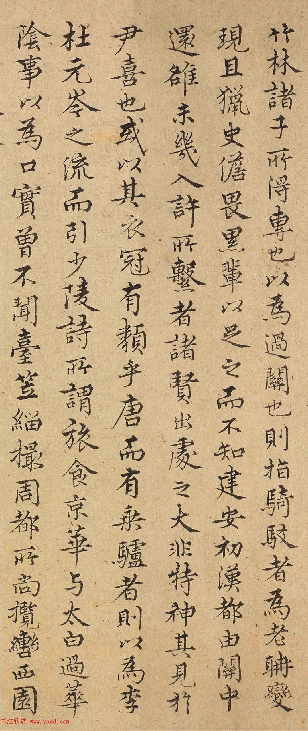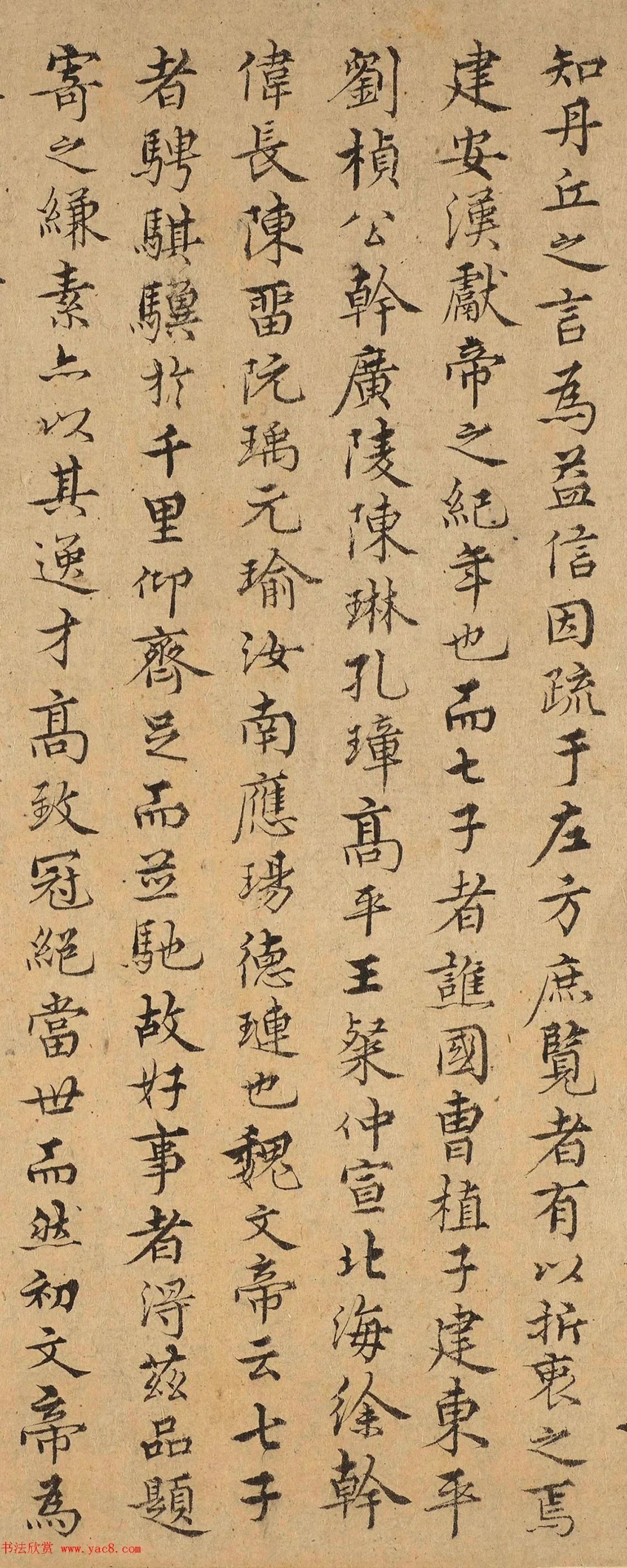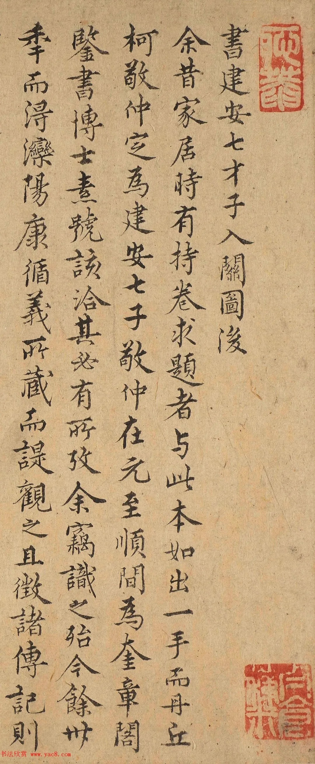 金问小字行楷书建安七才子入关图后,来源:南宋李唐(传)七子度关图卷,弗利尔美术馆藏。